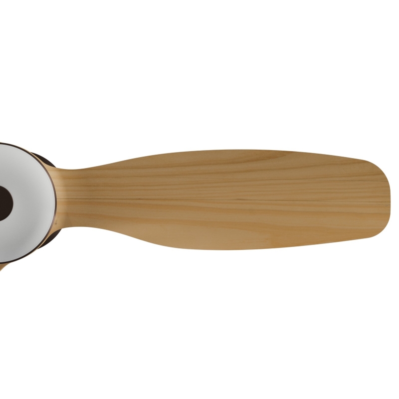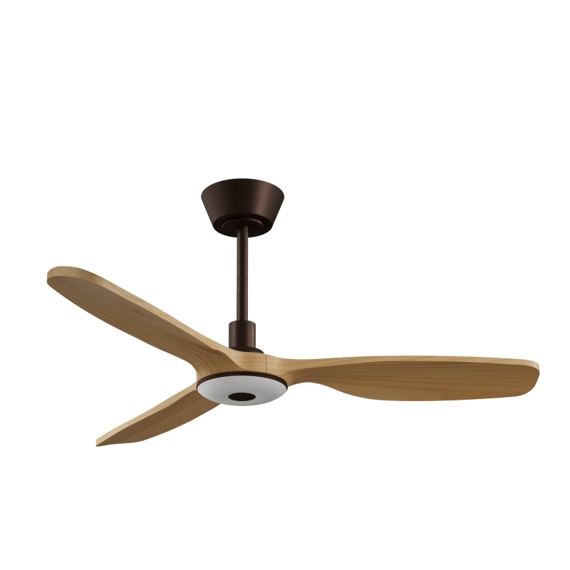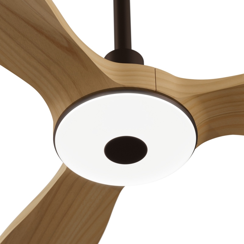 Balcony Neo διαθέτει DC μοτέρ 10 ταχυτήτων και καφέ "σκουριάς" φινίρισμα σε σώμα και μασίφ ξύλινα πτερύγια σε όψη ελαφρώς σκουρόχρωμου ξύλου.