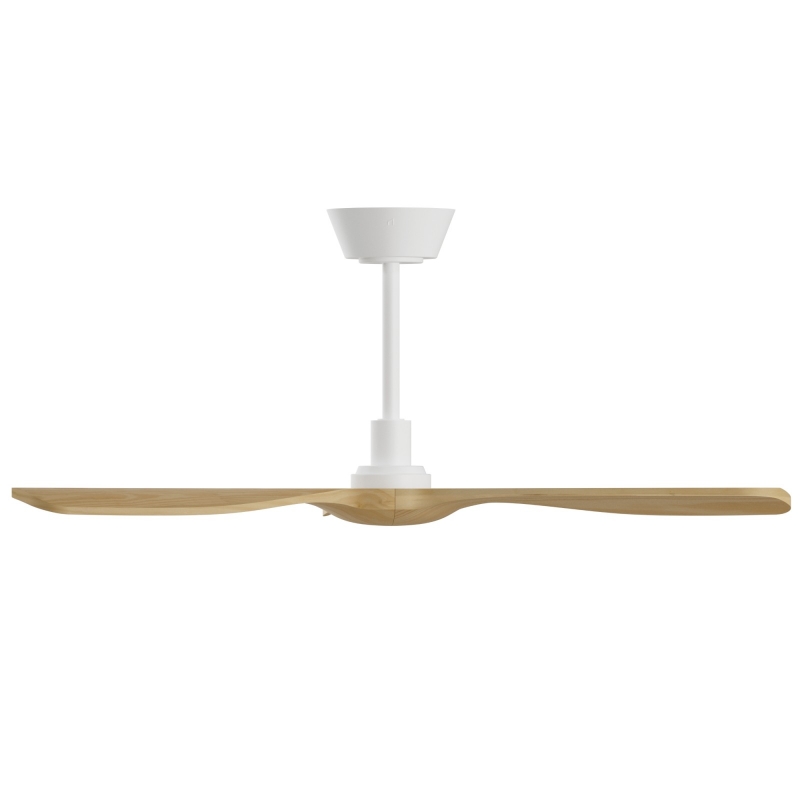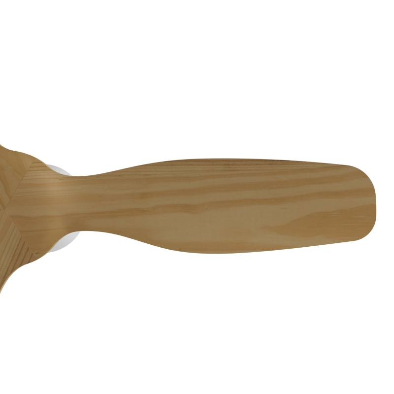 Balcony Neo διαθέτει DC μοτέρ 10 ταχυτήτων, ματ λευκό χρώμα σε σώμα και μασίφ ξύλινα πτερύγια σε όψη ελαφρώς σκουρόχρωμου ξύλου.