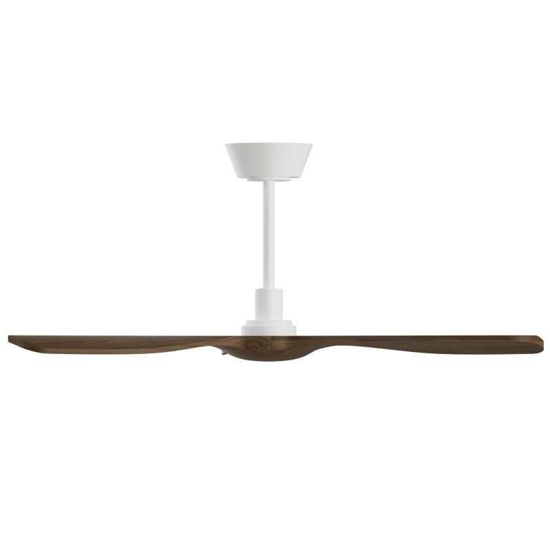 O Balcony Neo διαθέτει DC μοτέρ 10 ταχυτήτων και ματ λευκό χρώμα σε σώμα και μασίφ ξύλινα πτερύγια σε όψη σκουρόχρωμου ξύλου.