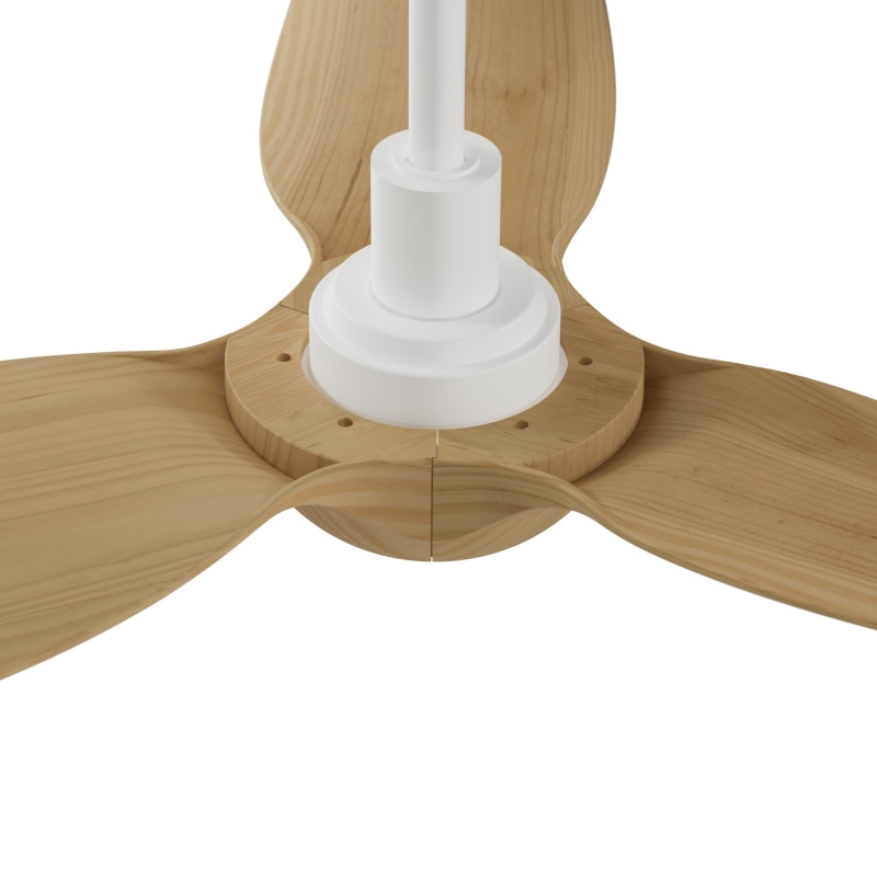 O Ivy Neo διαθέτει DC μοτέρ 10 ταχυτήτων, ακρυλικά πτερύγια σε φυσική όψη ξύλου και λευκό ματ χρώμα στο σώμα.
